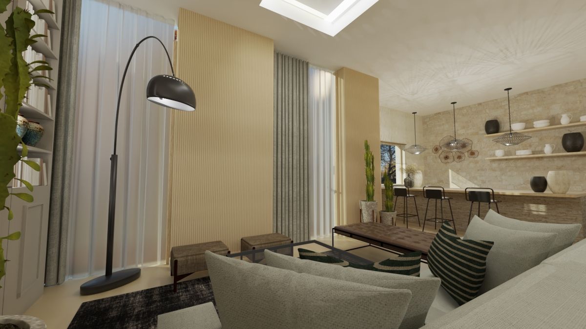 Configuramos un espacio muy original y multifuncional donde los libros y columpios de yoga son los protagonistas.